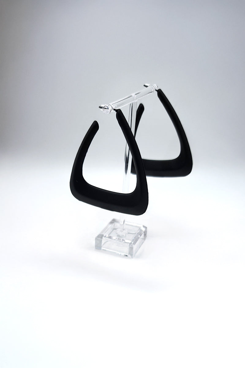 Get ready to elevate your style with these Black Triangle Hoop Earrings! These bold and unique earrings will make a statement and add a touch of edge to any outfit. Experience the power of these must-have earrings today!