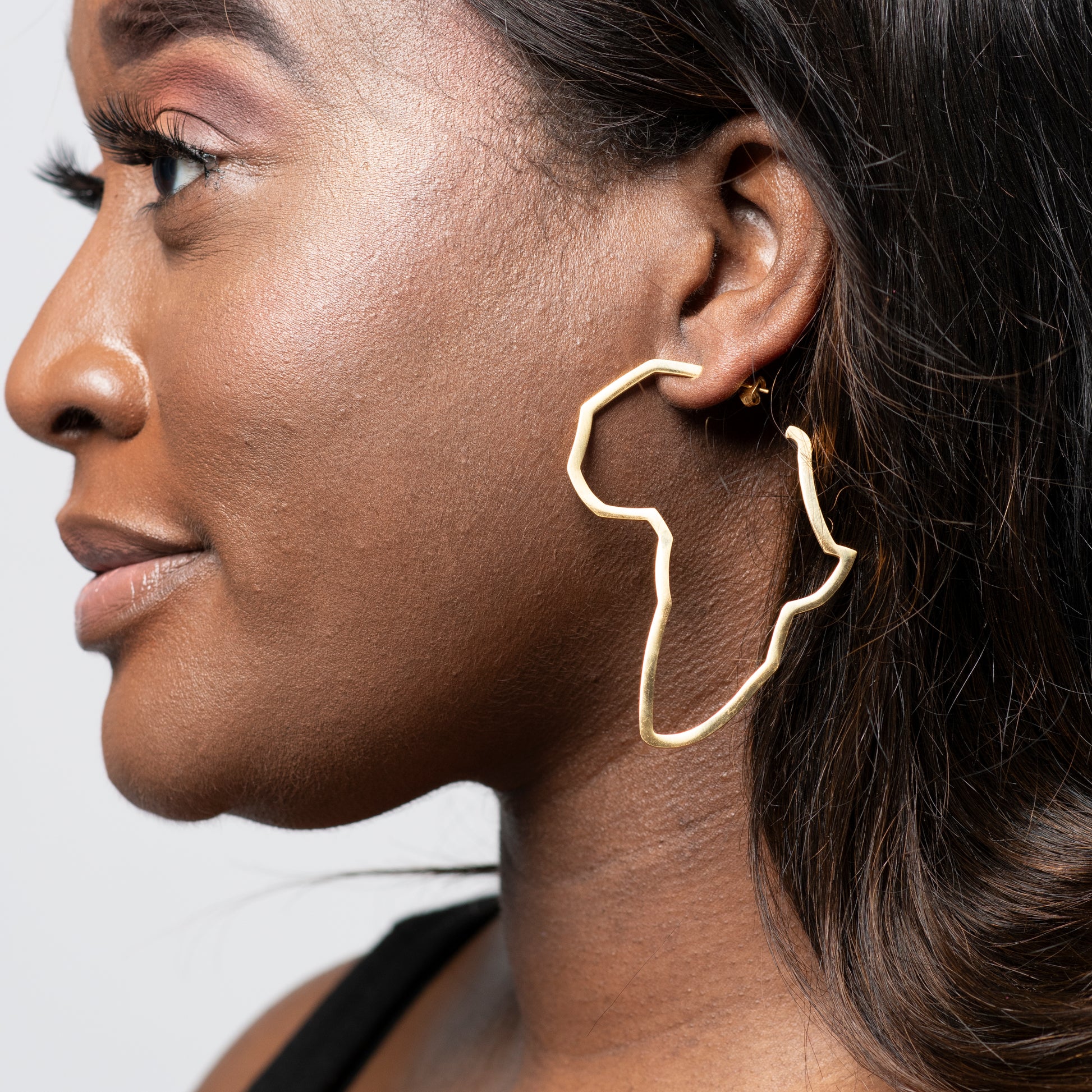 Make a statement with our Map of Africa Earrings! These light weight metal earrings feature a outlined map of Africa in your choice of gold or silver. Show off your love for travel and fashion with these unique earrings.