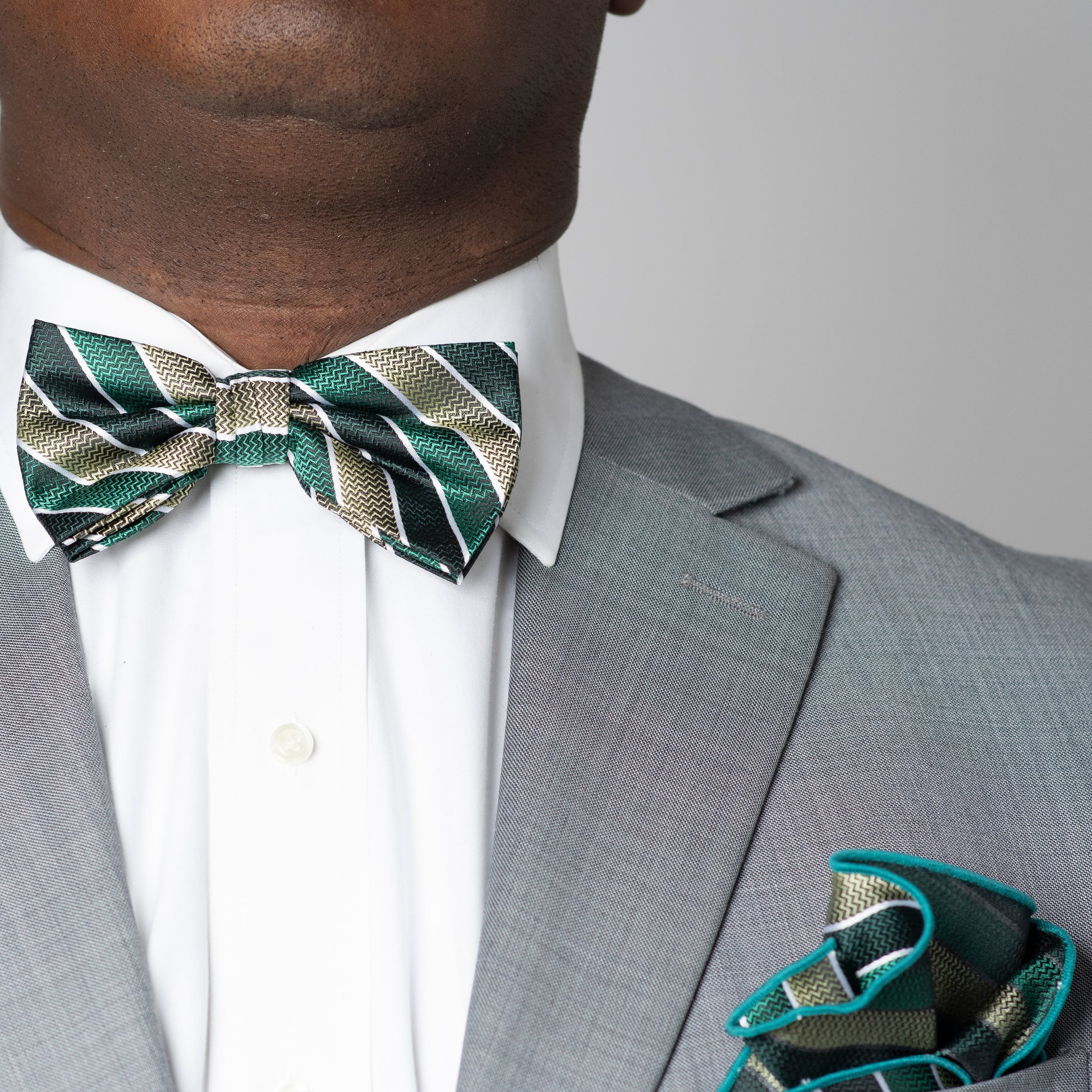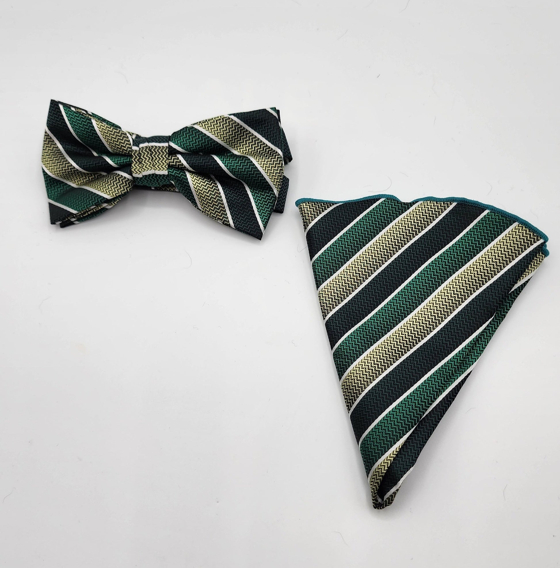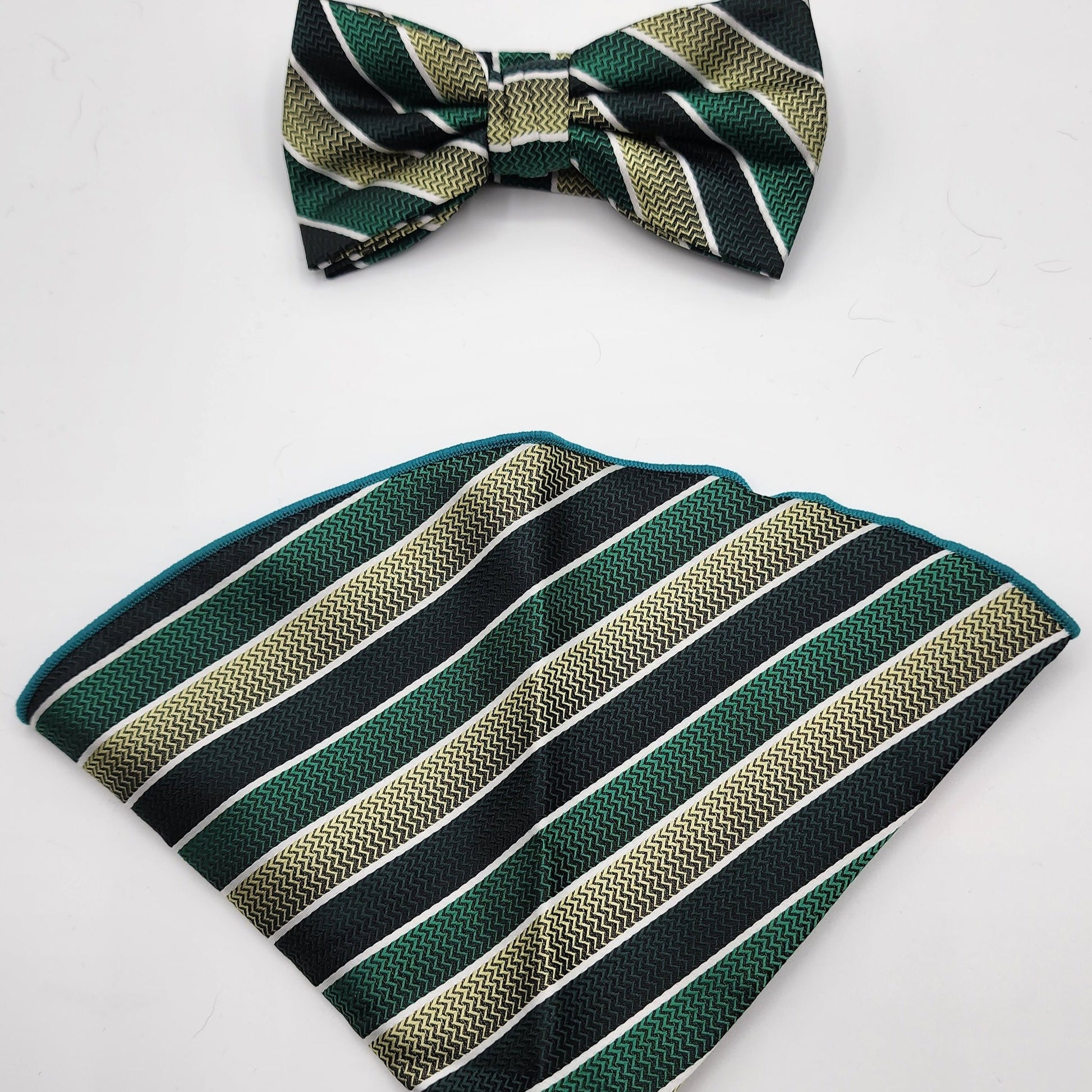 Add a touch of elegance to any outfit with Pablo's Bow Tie & Handkerchief Set. The banded bow tie is perfect for any formal occasion, while the hand finished piping pocket round adds a sophisticated touch for folding or ruffling. Elevate your style with this luxury set.
