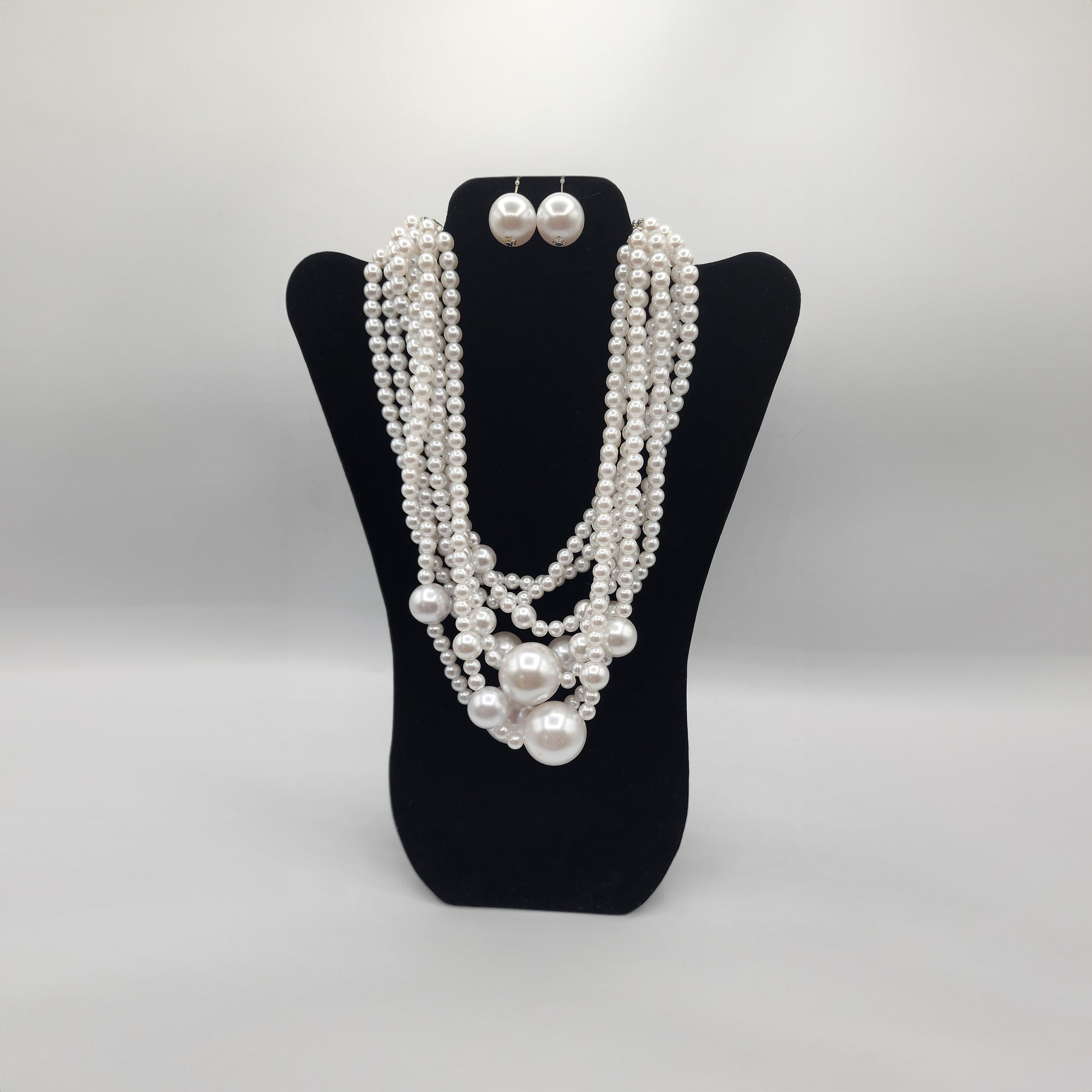 Indulge in luxurious elegance with our Multi-Pearl Necklace Set. This stunning white layered pearl necklace comes with a matching pair of earrings, perfect for completing any outfit with sophistication and style. Elevate your look and embrace the beauty of fine jewelry with this exclusive set.