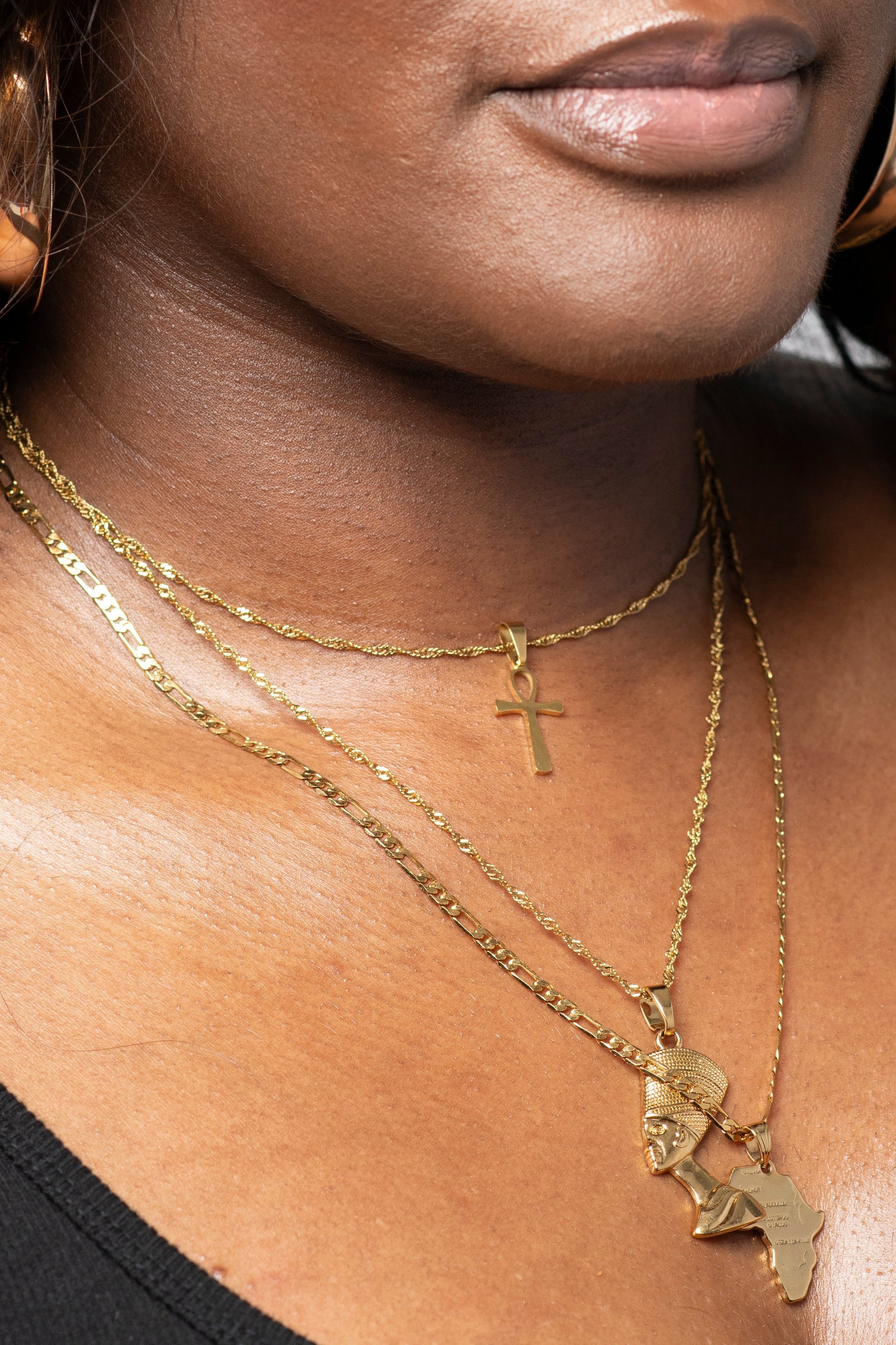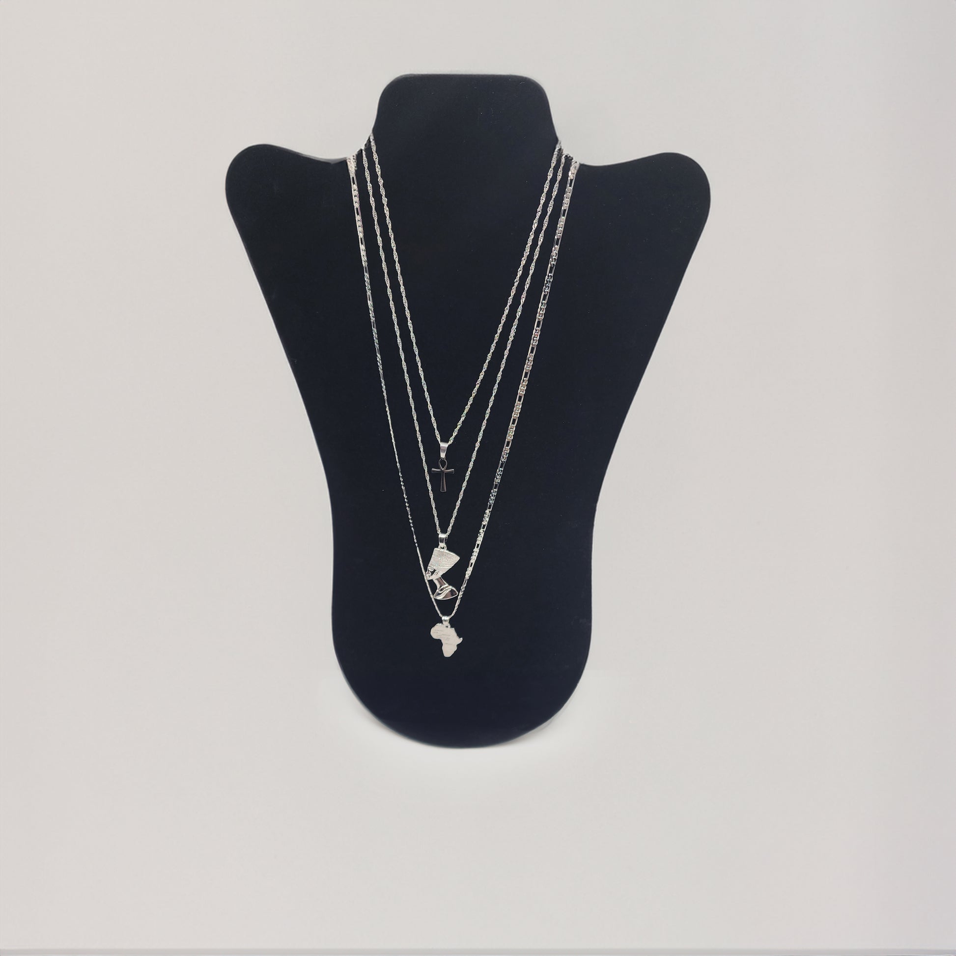 Ankh Necklace Length: 16", Nefertiti Necklace Length: 20", Africa Necklace Length: 24"