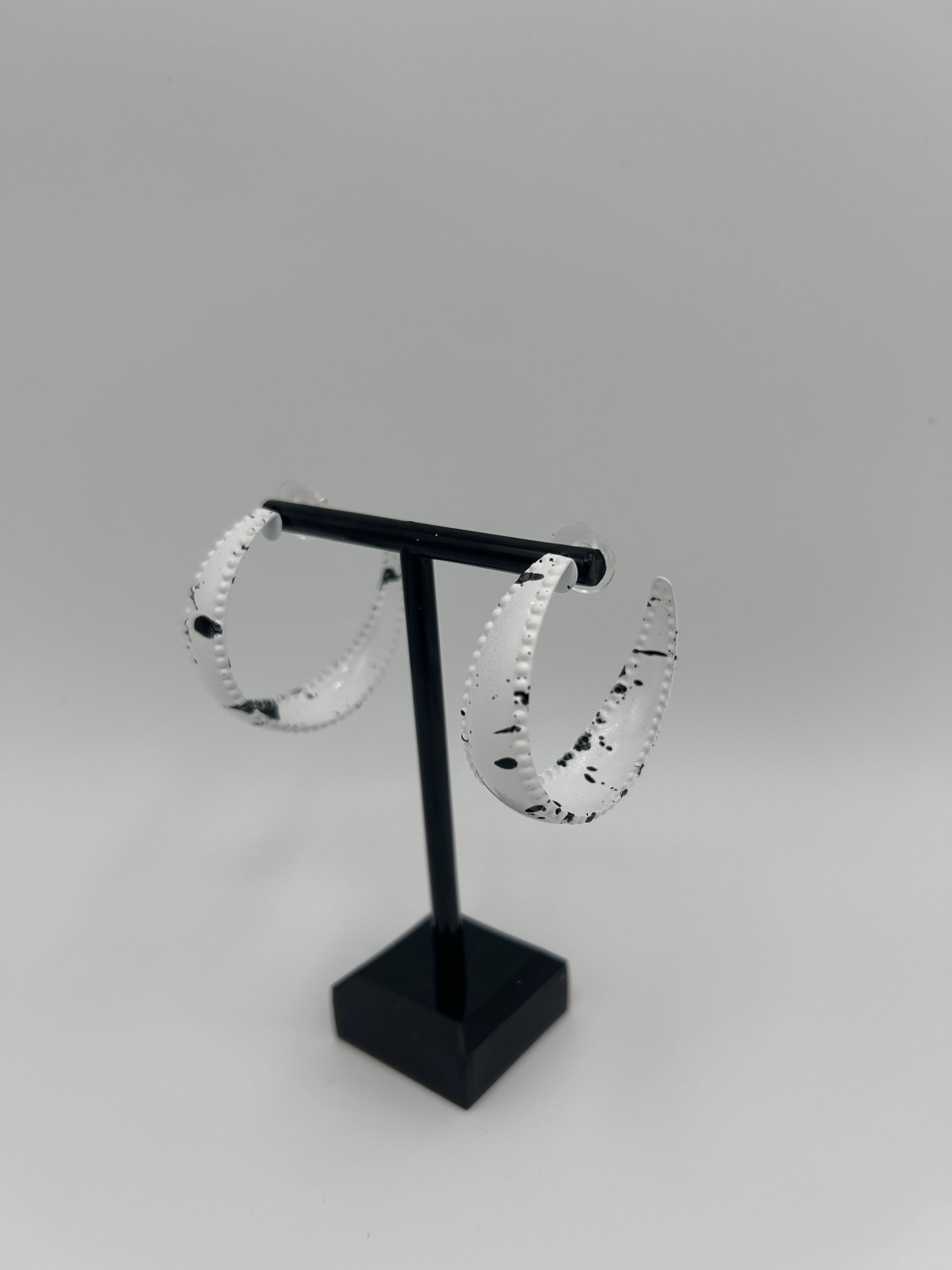 Unleash your bold and adventurous side with our White and Black Speckled Hoop Earrings! The dynamic speckled design adds a touch of uniqueness to your style, while the classic hoop shape is perfect for any occasion. Step up your earring game and make a statement with these daring and stylish hoops.